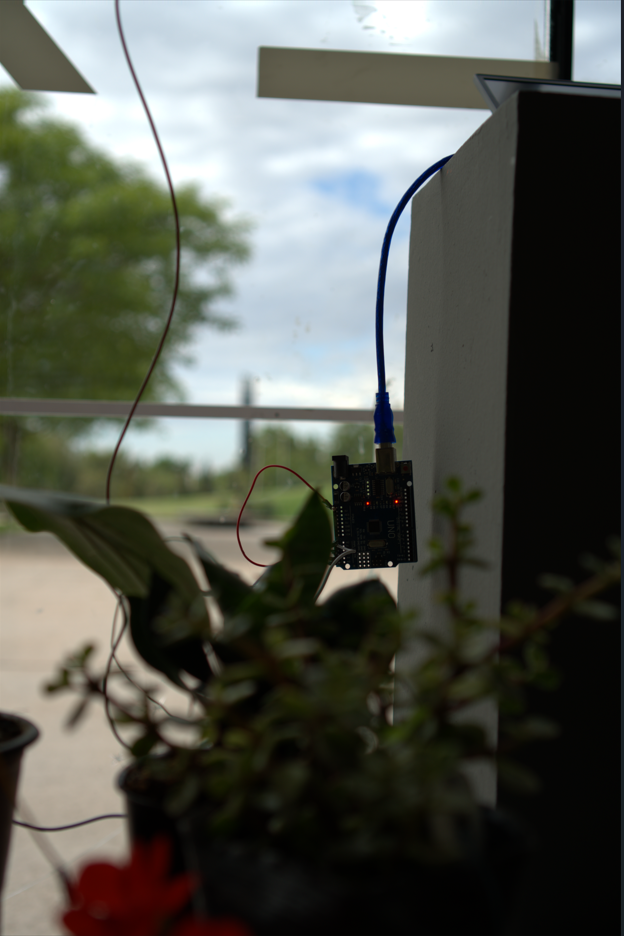 Se incorpora además un sistema de visión por computadora (OpenCV) que detecta la presencia y el movimiento de las personas en el espacio expositivo. La presencia humana funciona como puerta o modulador del sistema: cuando la sala está vacía, la planta sostiene un paisaje sonoro más sobrio y contenido; cuando alguien entra o se desplaza, se activan cambios de modo, efectos e intensidad, habilitando nuevas respuestas del ecosistema sonoro y configurando la instalación como un diálogo entre planta, algoritmo y cuerpo humano.